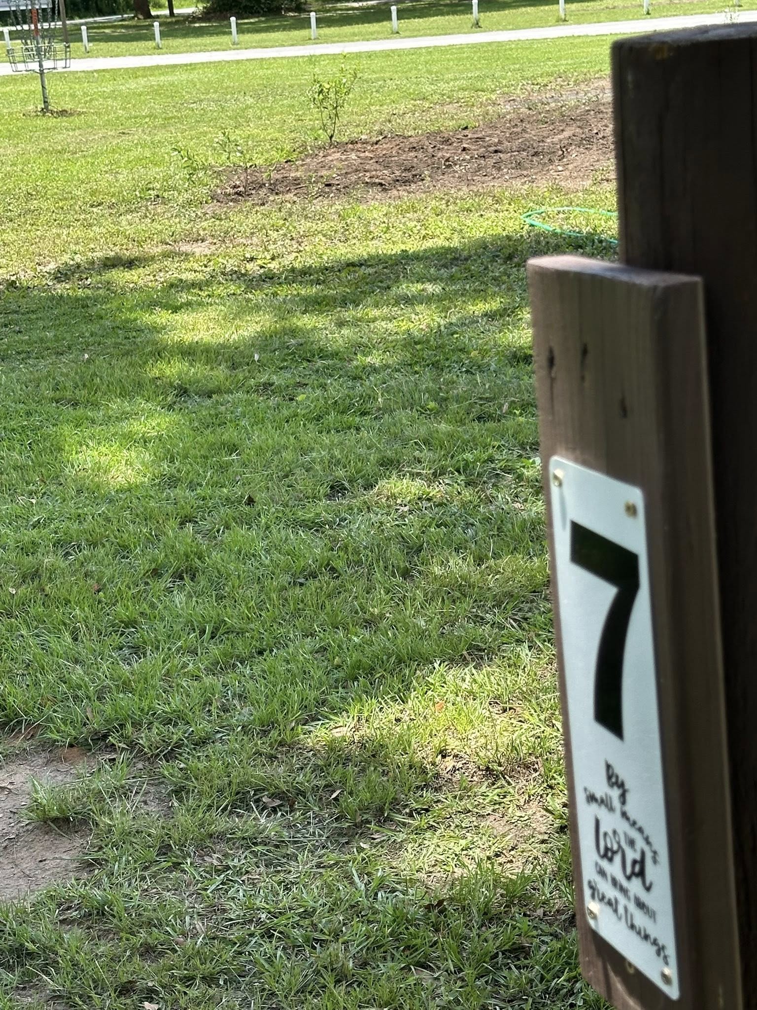 The trailhead is conveniently located next to the parking lot by the soccer field and Disc Golf first tee.